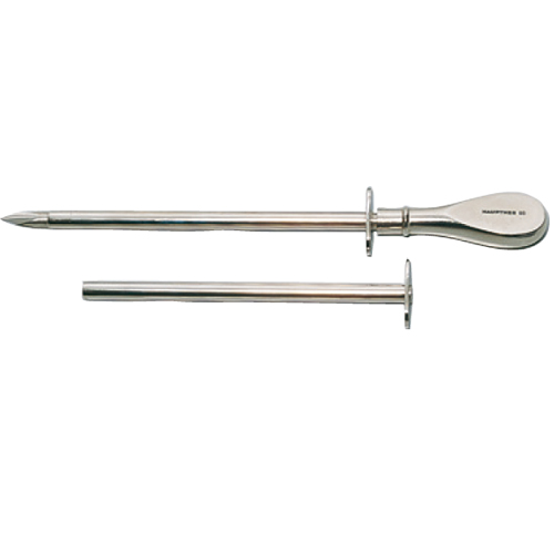 Trokar mit Metallheft, mit zwei Hülsen (vernickelt), Dornlänge 17,5 cm, 7,5 mm Durchmesser, nichtrostend