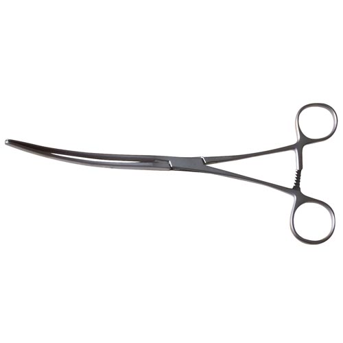 Darmklemme nach Doyen, längs gerieft, leicht federnd, nichtrostend, gebogen, 23 cm