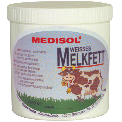 Melkfett, weiß, Salbenrezeptur zur täglichen Pflege des Euters vor dem Melkvorgang, um Euter und Zitzen weich und geschmeidig zu erhalten und damit die Belastungen durch Maschinenmelken minimiert werden, 1000 ml