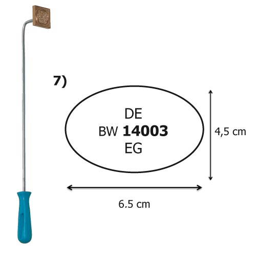 Fleischbeschaustempel, Messing graviert mit Hammergriff 50 cm
