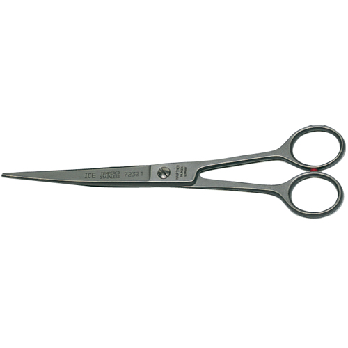 Diese Schere ist als Haarschere und als Anschneideschere verwendbar, mit aufgebogenen Spitzen, gerade Schenkel, 19 cm, nichtrostend