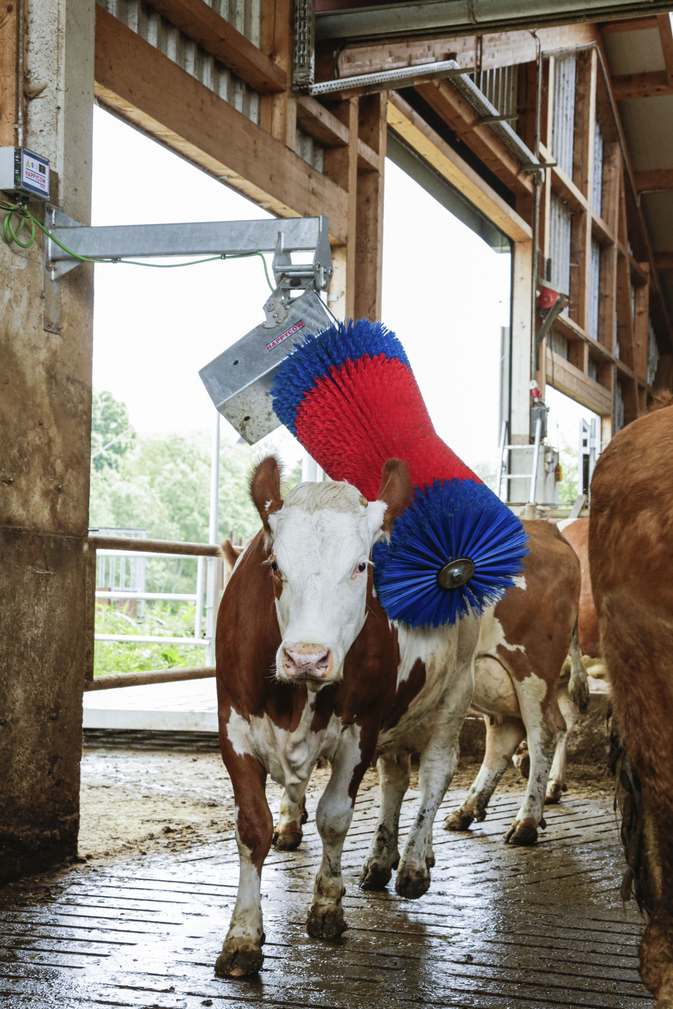 die HAPPYCOW Swing-Serie wird durch leichtes Auslenken der Bürste von den Tieren selbstständig aktiviert,hochwertige Borsten garantieren langlebigen Einsatz,optimiertes Auflagegewicht der Bürsten sorgt für tiergerechte Benutzung,Dauerschmierung des Getriebes über die gesamte Lebensdauer der Maschine,intelligente Elektronik für störungsfreien und wartungsarmen Betrieb,Steuerung mit gut sichtbarem Display zur Anzeige des Betriebszustands,variable Einstellmöglichkeit der Bürstenlaufzeit (10 - 300 s),die wechselnde Laufrichtung der Bürste nach jeder Aktivierung sorgt für ein gleichmäßiges Abnutzen der Bürsten,durch die drehmomentabhängige Sicherheitsabschaltung stoppt die Bürste bei zu großem Widerstand und sorgt so für Sicherheit im Stall,steckerfertig für Anschluss an 230 Volt Steckdose,alle Stahlteile feuerverzinkt
