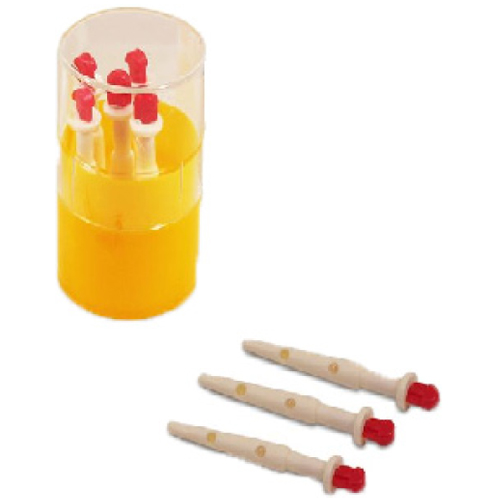 Plastik-Zitzenkanülen aus elastischem Kunststoff, mit seitlichen Öffnungen, aus denen abgefüllte Salben langsam ausdringen können, 5 mm Durchmesser, 5 cm lang, Dose mit 5 Stück in Vaseline